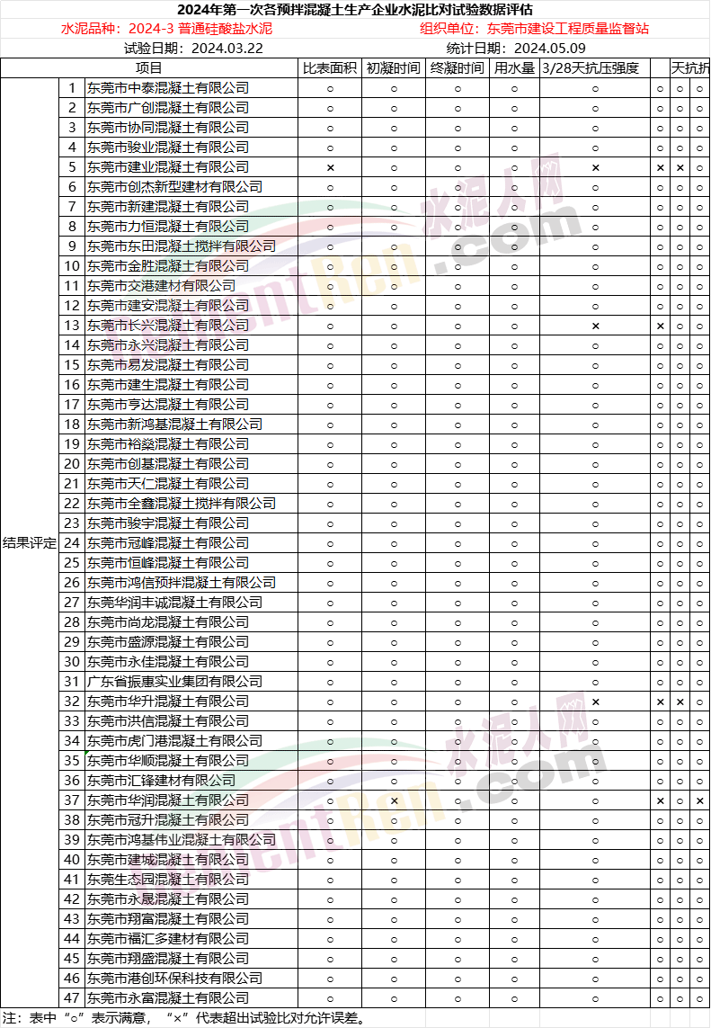 為加強(qiáng)對(duì)我市預(yù)拌混凝土生產(chǎn)企業(yè)的質(zhì)量管理,提高各企業(yè)試驗(yàn)室的檢測(cè)能力,我站于2024年3月22日組織各預(yù)拌混凝土生產(chǎn)企業(yè)進(jìn)行了2024年第一次水泥比對(duì)試驗(yàn),并于5月9日完成試驗(yàn)結(jié)果的統(tǒng)計(jì)工作?,F(xiàn)將有關(guān)情況通報(bào)如下: