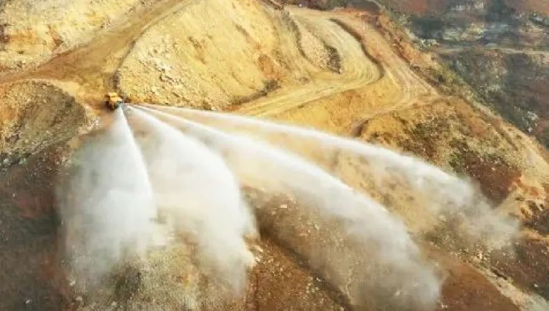 小編最近被一張圖片震撼了,圖片上一輛橙色的大車在重巒疊嶂的礦山間噴射出巨大面積的水幕,仿佛給爆破面穿上了護身衣,那場面極其壯觀。大家一定很好奇這張照片吧?別急,小編今天的故事就是和大家講講這張照片的由來。