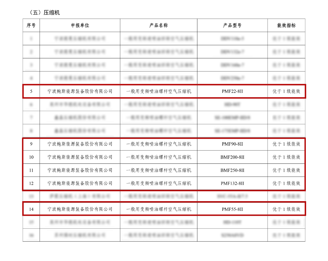 《目錄》共分為工業(yè)節(jié)能降碳技術、信息化領域節(jié)能降碳技術和高效節(jié)能裝備三大類,包含工業(yè)節(jié)能降碳技術12項,信息化領域節(jié)能降碳技術3項,高效節(jié)能裝備9項。其中,鮑斯一般用變頻噴油螺桿空氣壓縮機中6款產(chǎn)品成功入選。