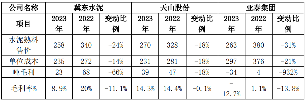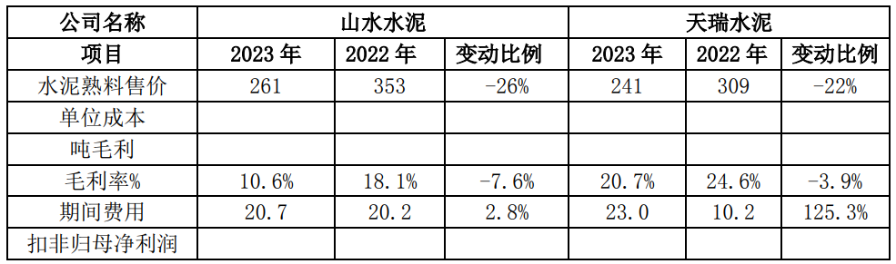 注:山水水泥、天瑞水泥2023年暫未披露水泥及熟料單位成本、噸毛利及扣非歸母凈利潤相關(guān)信息。