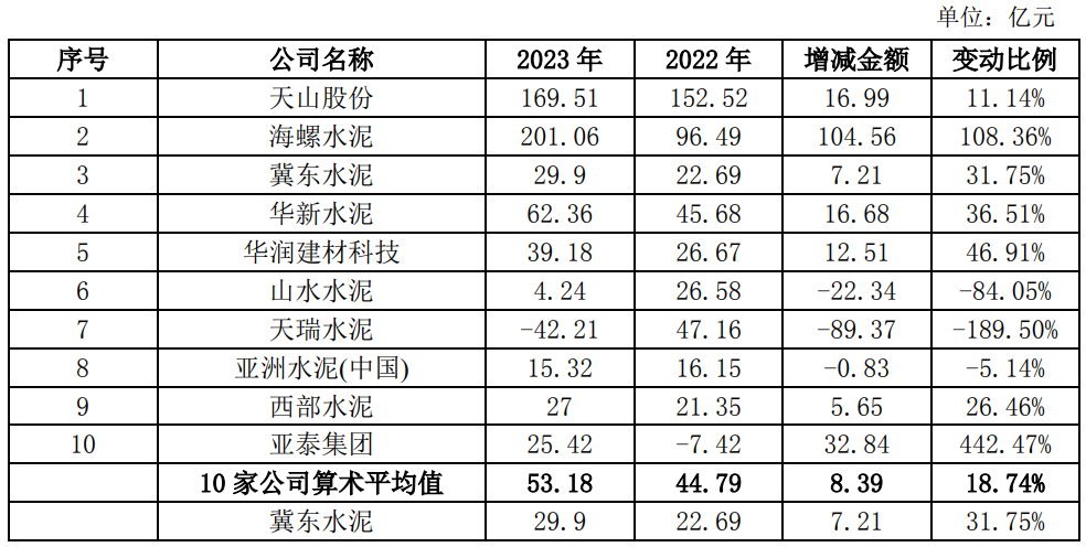 根據(jù)中國證監(jiān)會行業(yè)分類,公司屬于C30大類“非金屬礦物制品業(yè)”,其中,主營業(yè)務(wù)包括水泥及熟料的A股、H股上市公司共計22家,選取2023年上市公司產(chǎn)能規(guī)模前10名(來源:數(shù)字水泥網(wǎng))水泥企業(yè)進行對比,具體情況如下: