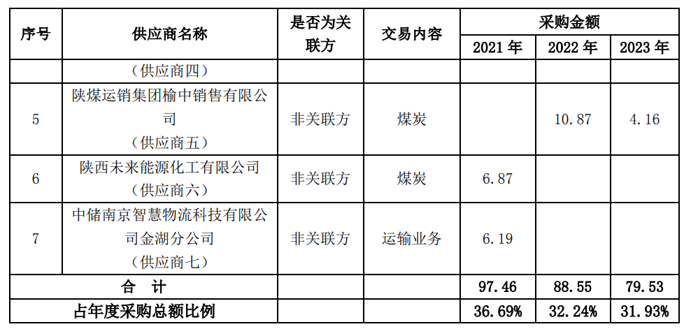 2023年公司前五名供應(yīng)商中供應(yīng)商三、四、五為煤炭供應(yīng)商合計采購金額為22.61億元,占年度采購總額的9.08%,占公司全部煤炭采購份額的28%左右,三家煤炭供應(yīng)商分別約占公司全部煤炭采購份額的13、10%、5%;公司始終秉承公平公正的原則,推行煤炭統(tǒng)采、直采,注重采購渠道的管理,降低采購成本,不存在對某個供應(yīng)商有重大依賴。