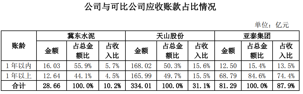 注:山水水泥、天瑞水泥2023年暫未披露應(yīng)收賬款賬齡相關(guān)信息。