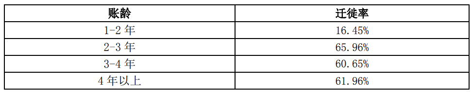 1年以上壞賬計提比例確認依據(jù)為以賬齡表為基礎(chǔ)的減值矩陣模型計算得出的預(yù)期信用損失率,是在賬齡分析法的基礎(chǔ)上利用遷徙率對歷史損失率進行估計,并在考慮前瞻信息后對信用損失進行預(yù)測。