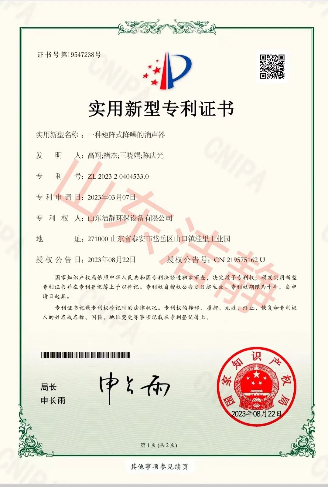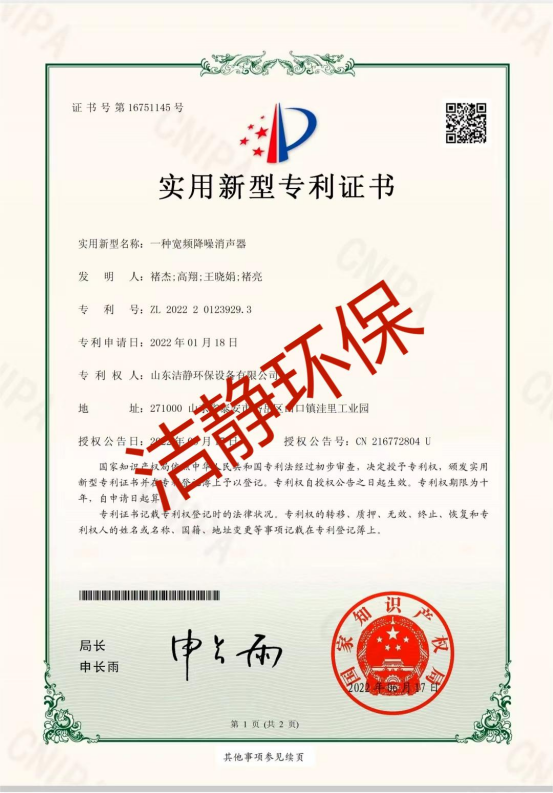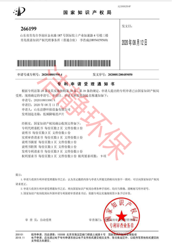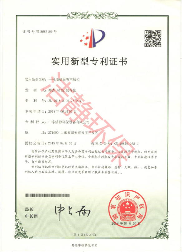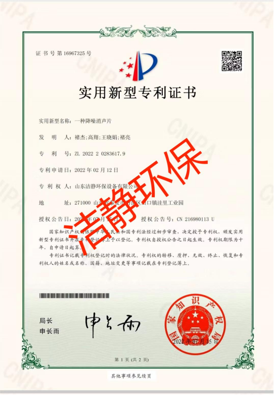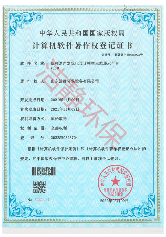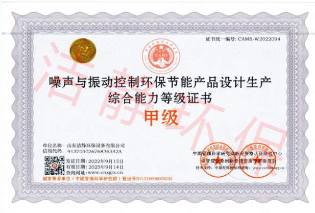 公司已通過(guò)質(zhì)量體系認(rèn)證、環(huán)境管理體系認(rèn)證、職業(yè)健康安全體系認(rèn)證,擁有各類(lèi)消聲器、隔聲罩(房)、吸聲結(jié)構(gòu)、聲屏障等專(zhuān)利17項(xiàng),消聲降噪設(shè)備計(jì)算機(jī)軟件著作權(quán)14項(xiàng),各類(lèi)產(chǎn)品權(quán)威部門(mén)的檢測(cè)報(bào)告13項(xiàng),環(huán)保工程專(zhuān)業(yè)承包二級(jí)等相關(guān)設(shè)計(jì)施工資質(zhì)。是國(guó)內(nèi)歷史久、專(zhuān)利多、質(zhì)量一流的噪聲工程類(lèi)專(zhuān)業(yè)環(huán)保公司之一,是集現(xiàn)場(chǎng)檢測(cè)、測(cè)繪、設(shè)計(jì)、生產(chǎn)、安裝施工、調(diào)試、售后等一條龍服務(wù)的公司。