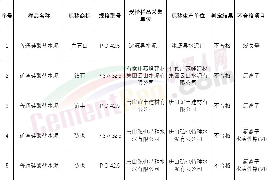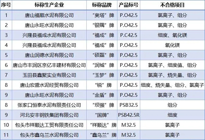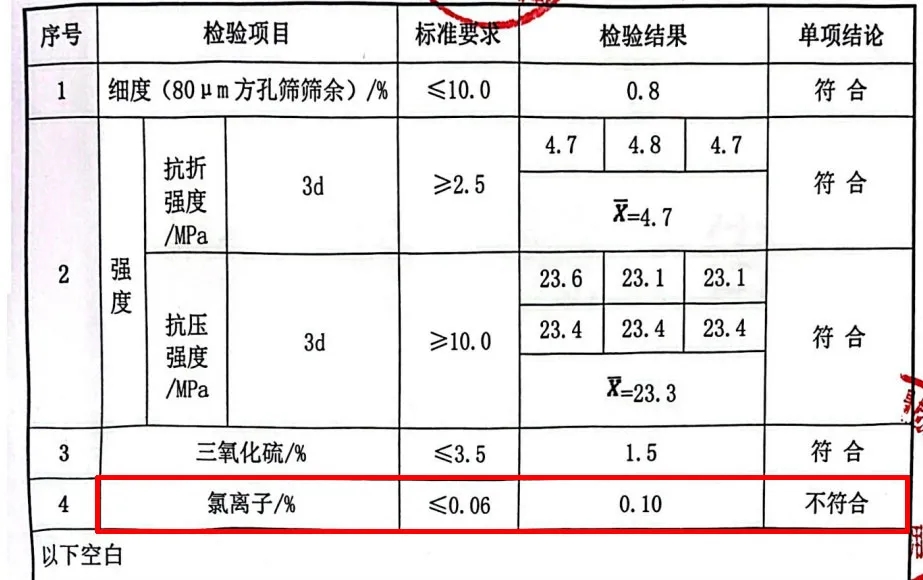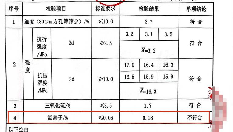 內(nèi)蒙古包頭市兩批次水泥氯離子不合格