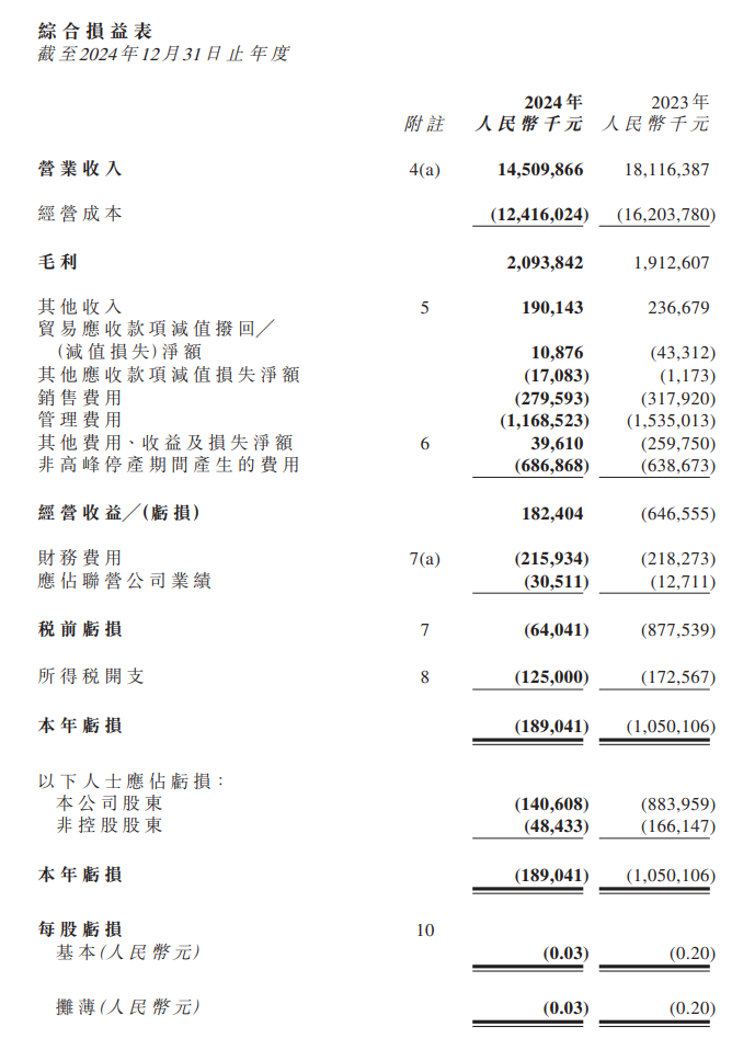 本年度虧損主要由于水泥受市場(chǎng)需求疲弱,銷量下降所致。惟因本年度各項(xiàng)成本及費(fèi)用控制措施下,營(yíng)業(yè)毛利上升,銷售、管理及財(cái)務(wù)費(fèi)用皆有不同程度的降幅,因而全年虧損同比收窄。