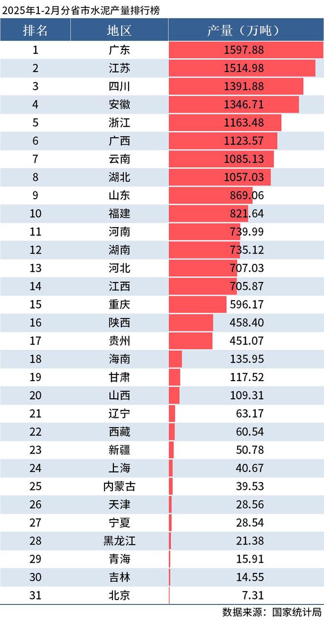 國家統(tǒng)計局數(shù)據(jù)顯示,1-2月中國水泥產(chǎn)量為1.71億噸,同比下降5.7%。