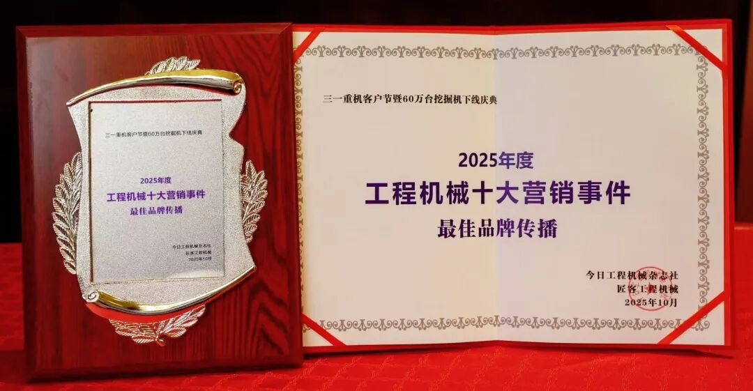 2025年10月22日,“2025年度工程機械十大營銷事件”在江蘇常州重磅發(fā)布。“三一重機客戶節(jié)暨60萬臺挖掘機下線慶典”榮登“2025年度工程機械最佳品牌傳播事件”。
